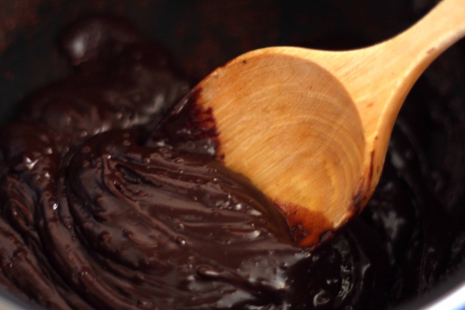 1. Ponemos en un cazo la leche condensada, el cacao y la mantequilla. Mezclamos bien a fuego medio-bajo y mantenemos un rato (como 10 minutos) sin dejar de mover hasta que la mezcla empiece a despegarse del fondo del cazo.