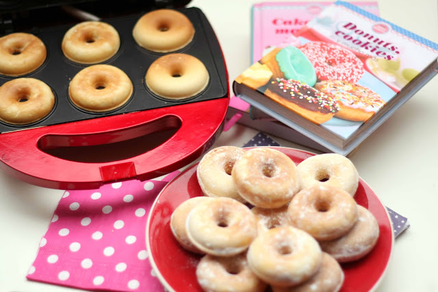 De los donuts os diré que salen divinos y que son super fáciles de hacer... son chulis estas maquinitas, un caprichín, la verdad. Hoy he hecho la receta básica, y tomados tal cual con azúcar glas estan tremendos pero es que, luego además, ya es lo que se te ocurra, por ejemplo inyectándoles Nutella por dentro o con un coulis de frutos rojos.... la verdad es que por su tentador tamaño son irresistibles. Una ventaja muy grande de la donutera es que te saltas el paso de freirlos y así son mucho más sanos e igualmente deliciosos.