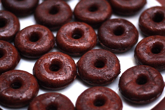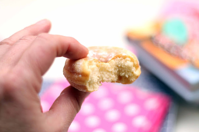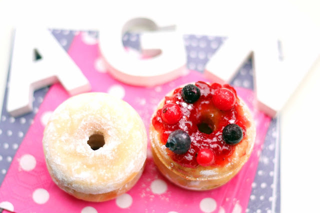 De los donuts os diré que salen divinos y que son super fáciles de hacer... son chulis estas maquinitas, un caprichín, la verdad. Hoy he hecho la receta básica, y tomados tal cual con azúcar glas estan tremendos pero es que, luego además, ya es lo que se te ocurra, por ejemplo inyectándoles Nutella por dentro o con un coulis de frutos rojos.... la verdad es que por su tentador tamaño son irresistibles. Una ventaja muy grande de la donutera es que te saltas el paso de freirlos y así son mucho más sanos e igualmente deliciosos.